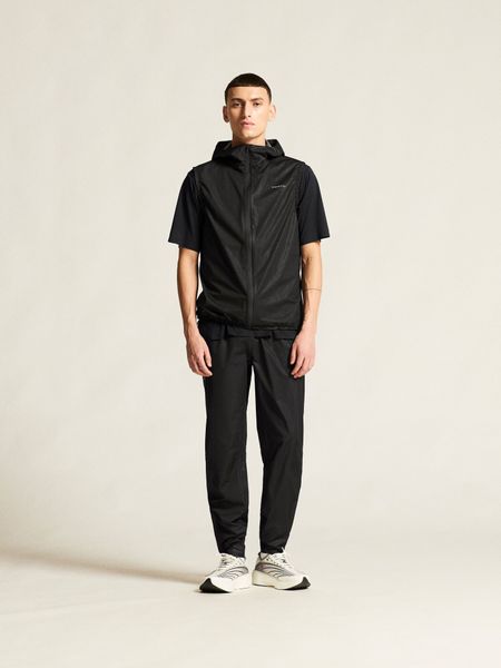"Lightweight, windproof and waterproof men's vest with adjustable hood for running, hiking and trekking."