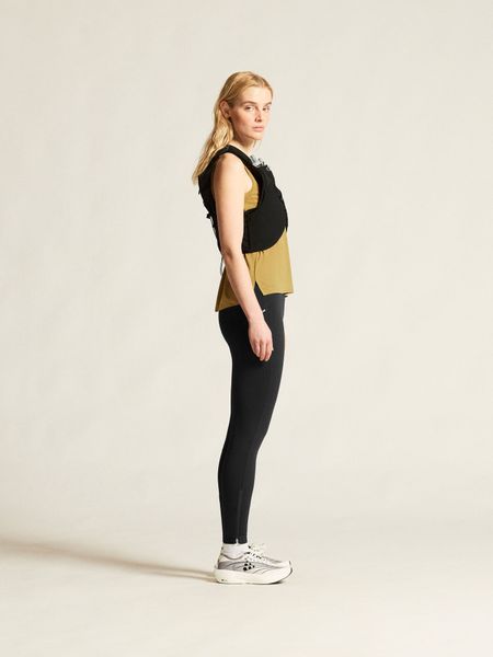 "High-quality running tights for women with excellent moisture transport and practical pockets for trail running."