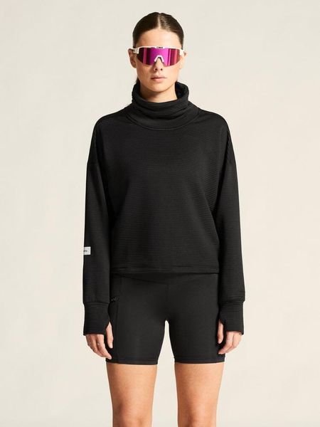 "The Subz Funnelneck Jersey for women by Craft is the ideal choice for anyone who doesn't want to compromise on style and functionality when running. This sweater features a unique design with a funnel neck that not only looks fashionable, but also offers additional protection from the wind. The special feature of this jersey is the Gridtexture jersey, which, in combination with the Primaloft padded lining, provides excellent thermal insulation. This keeps the body pleasantly warm even in colder temperatures without restricting breathabilityu00e4."