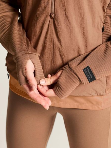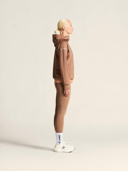 "Experience ultimate comfort and stylish protection with the Subz Light Hood Sweater for women from Craft. This hybrid hoodie combines the softness of a jersey fabric with a grid-like backing for enhanced breathability. Perfect for leisure activities and running, it offers an ideal blend of functionality and style for everyday urban life and work."