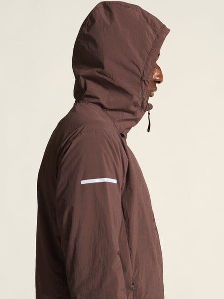 "Lightweight men's running jacket with hood, made from soft polyester and Primaloft insulation for optimum comfort and warmth."