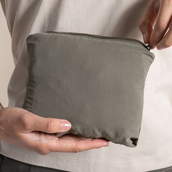 - Main fabric: "100% recycled nylon polyamide / pocket bags": 100% polyester