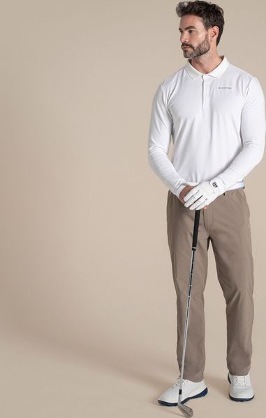 "Technically sophisticated golf trousers with a winning formula. Their stretchy fabric not only provides effective protection against UVradiation, but can also repel insects and inhibit odours thanks to treatment with NosiLifetechnology, while the optimized fit ensures unrestricted freedom of movement. The adjustable waistband increases comfort, a bumper strap ensures durability and practical pockets provide space for all the essentials."