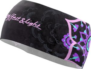 A raw cut head band for high intensity running. It is made of a light microfibre with a graphene print."