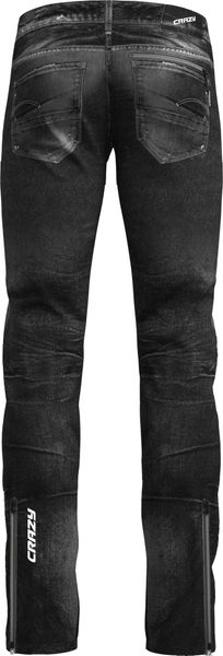 "Technical jeans for outdoor and everyday wear, comfortable, breathable, wind and water-repellent, with practical details."