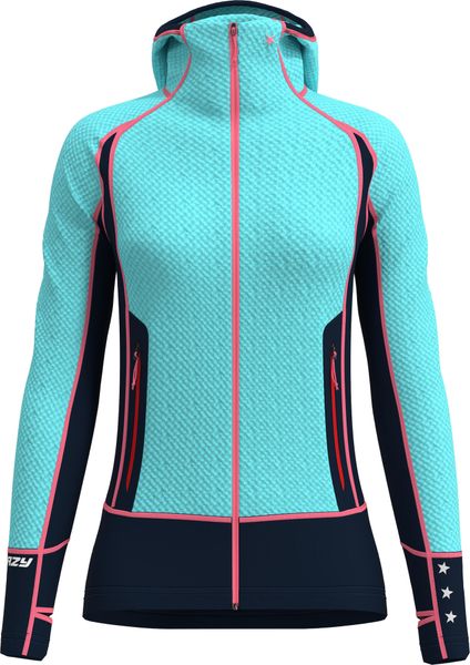 "The fully opening front zip makes it easy to put on and take off, while the ergonomic hood with a special opening for the plait provides additional comfort. The laser-cut slit pockets with bonded zippers are not only practical but also stylish. The ARTVA pocket with Easy Lock also ensures additional security on your tours. Flat seams in a contrasting color and reflective logos round off the design and offer both functionalityu00e4t and visibility."