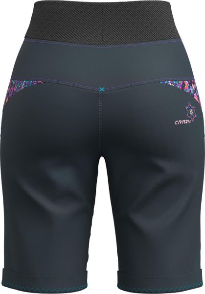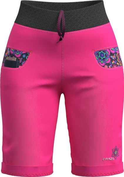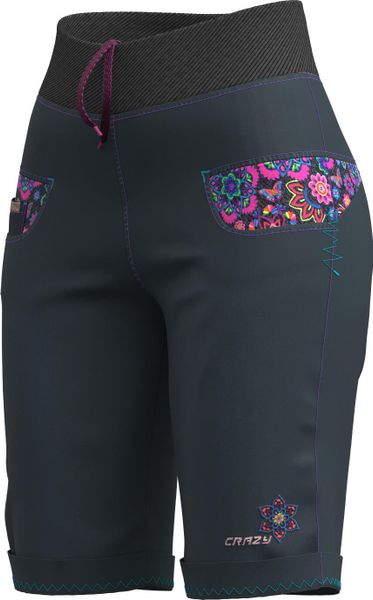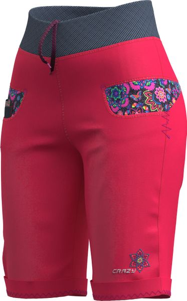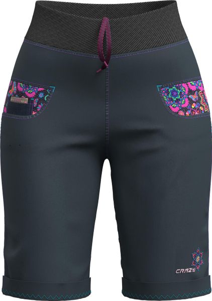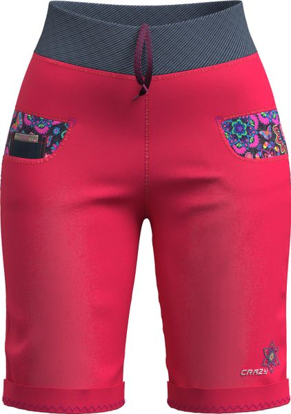 "The Aria shorts by Crazy are a lively and cheerful garment that impresses with its eccentric and colorful design. These versatile shorts are perfect for women who value comfort and style, whether for everyday urban life, leisure activities or climbing. Made from performancecotton or indigojeansstretch fabric, they offer outstanding elasticityu00e4t and freedom of movement. The elasticated ribbed waistband, which can be adjusted with an elasticated drawstring, ensures an optimum fit. Exclusive pocket inserts with unique prints and embroidered logos give the shorts a special charm. Whether you're going for a relaxed stroll or scaling a climbing wall, the Aria shorts always guarantee maximum comfort and freedom of movement."