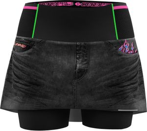 Skort running is the most representative item of the collection, a real "must have" for the athletes who take part in the Sky races or long trails. The inner half-leg shorts with a slightly compressive effect ismade of the italian Revolutional Slim fabric, and its micromassage effect significantly reduces the buildup of the lactic acid. The skirt is made of a very light Light Stretch fabric layer with differentiated ventilation micro Laser cut. The waistband has a multipocket basque and a bonded hem.
