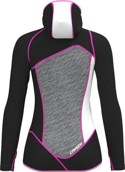"Our Ionic Pull is the most popular piece in Crazy's summer collection! It is a versatile midlayer designed for trekking and medium intensity sports. The fashionable look is the icing on the cake thanks to its elegant and stylish design, emphasized by its curved lines. It is made entirely of High Performance 3D, the proven fleece that ensures breathability thanks to its 3D honeycomb structure, making it the ideal mid-layer to cope with temperature fluctuations."