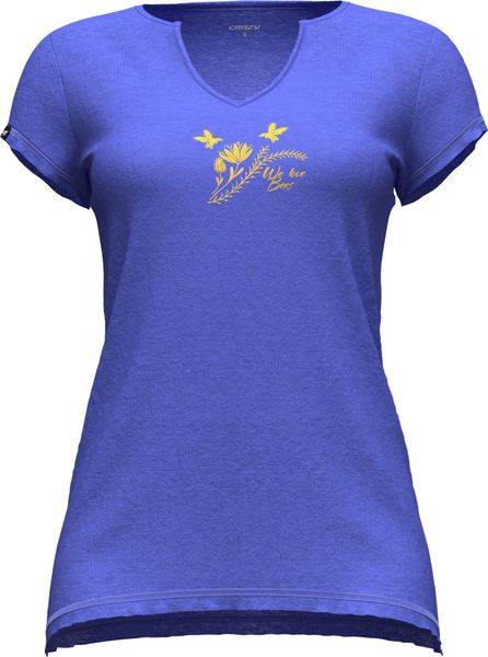 "The Mandala T-Shirt is characterized by its exclusive designs and screen print patterns. Stylish and eye-catching, it is a perfect product for leisure time and is made from natural hemp. The Vneckline and very short, raw-cut sleeves are characteristic features"