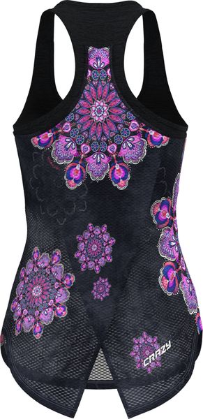 "The Break Top is Crazy's tank top with integrated bra, designed for outdooractivitiesu00e4ten and trekking. It features vibrant prints and eye-catching colors without sacrificing technical features, thanks to the inner melangemicrofiber-rapid-dry fabric and the breathable meshuuuufabric layer with quick-drying finish. It features soft straps, an integrated inner bra and a deep back slit that provides ventilation and a unique fit."