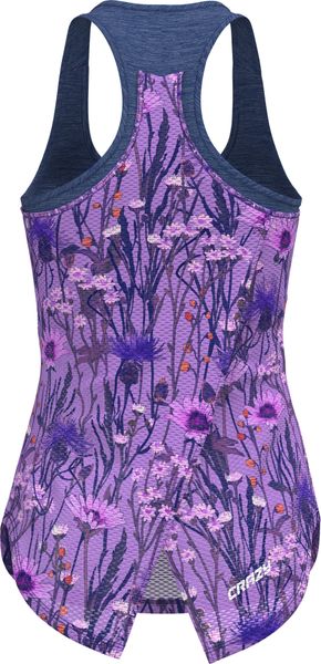 "The Break Top from Crazy is the ideal companion for women who enjoy longer trekkingtours or hikes. This tank top combines stylish all-over prints with functional features that have been specially developed for outdoor activities. Thanks to the integrated bra, it not only offers optimum support, but also maximum comfort. The inner melange-microfiber-Rapid-Dry fabric ensures that moisture is wicked away quickly and the skin stays pleasantly dry. The breathable mesh outer layer also supports air circulation and enhances the quick-drying effect."