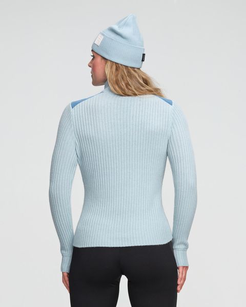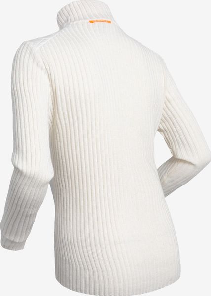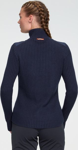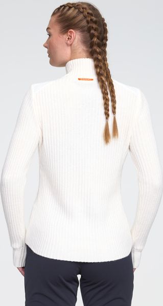 Wind-resistant women's pullover with merino wool and PFC-free waterproofing for everyday urban life and work.