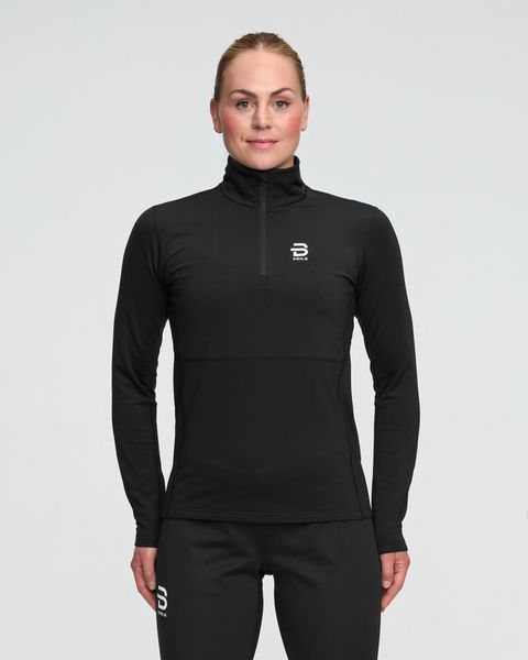 "Discover the ideal mid-layer for your sporting activities in the cold season. The Half Zip Pace by Daehlie is specially designed for women who want maximum comfort and protection when skiing, cross-country skiing or running. This garment offers more than just the functionality of a base layer, as it is equipped with a brushed inner side that optimally wicks away moisture so that you stay dry and warm during training"