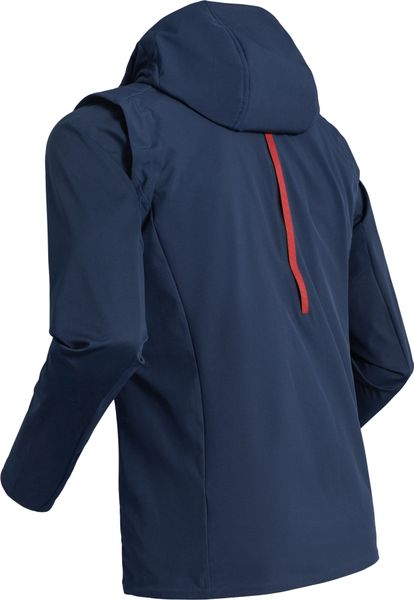 "An accessible zipper at the back provides optional ventilation, while elasticated shoulder caps and a detachable, adjustable hood offer additional protection. The high neckline with chin guard provides optimum protection against cold winds. This jacket is ideal for skiing, cross-country skiing and everyday wear and combines sport with fashionable design. The RAW 6.0 is not only proof of Daehlie's technical expertise, but also a must-have for athletes who strive for perfection in cold conditions."