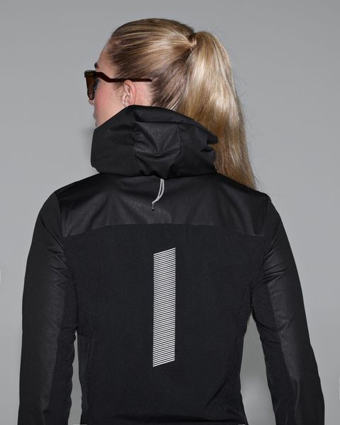 "The jacket is not only functional, but also cleverly designed: Strategically placed elasticated inserts and a lightweight fabric at the back guarantee maximum freedom of movement and excellent ventilation. A padded inner collar and chin guard provide additional comfort, while the fixed, adjustable hood offers optimum protection."