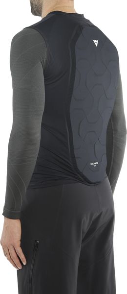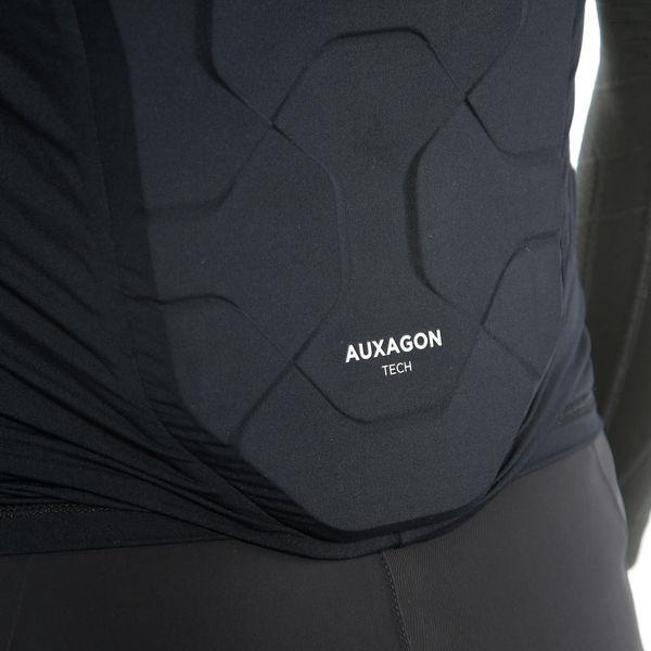 "The Auxagon Vest from Dainese offers skiers optimum protection without restricting their freedom of movement. Equipped with a Crash Absorb Memory Foam protector that expands on impact, this vest offers maximum protection by increasing the coverage area. Inspired by aesthetic shapes and geometries, this material is particularly innovative and effective"