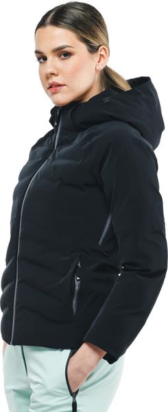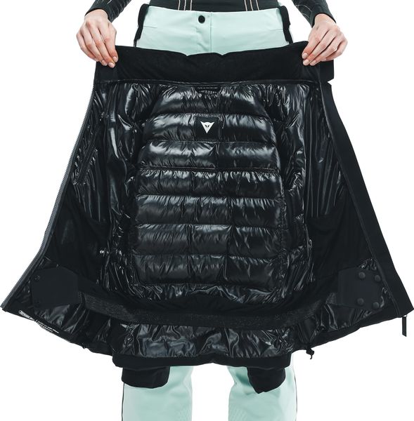 Ski down jackets are an icon of the Dainese collection. They maximize thermal insulation and guarantee maximum comfort in all weather conditions. The SKI DOWNJACKET SPORT WMN jacket for women is equipped with an impermeable membrane made of Dermizax® EV 20,000 mm/20,000 g/m²/24h, stretchable in four directions. Thermal insulation is guaranteed by the padding in Primaloft® Silver Cross Core, which protects against freezing temperatures thanks to the use of aerogel - the lightest solid in the world, made of 95% air - while keeping weight and space unchanged. The large adjustable zippered vents on the chest allow plenty of ventilation on warmer days and can be used as storage pockets thanks to the dual structure . The removable hood that takes up little space, the internal gaiters at the waist and the antinee cuffs on the inside of the sleeve complete the details of an equipment with which you can face any conditions.