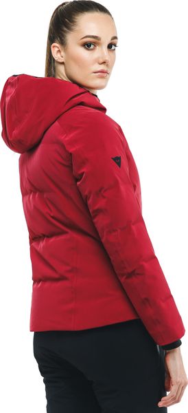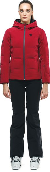 Ski down jackets are an icon of the Dainese collection. They maximize thermal insulation and guarantee maximum comfort in all weather conditions. The jacket SKI DOWNJACKET WMN for women is a must-have for the winter. A cross-functional down jacket with impermeable membrane made of Dermizax® EV 20,000 mm/20,000 g/m²/24h, stretchable in four directions, and padding made of warm goose feather with 750 CUIN filling power. Thanks to the high mobility and breathability guaranteed by the elastic membrane and superior insulating power, it is suitable for any winter sport. The fixed hood, the internal gaiters at the waist and the anti-snow cuffs on the inside of the sleeve complete the details of an equipment with which you can face any conditions.
