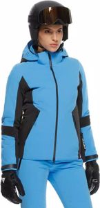 "The elastic inner lining at the back provides additional comfort, making this jacket the perfect choice for female skiers who want to push their limits without sacrificing comfort. Practical details such as waterproof zippers, multiple pockets for ski passes and other items as well as an adjustable drawstring at the hem and an adjustable hood round off the design of this technical jacket."