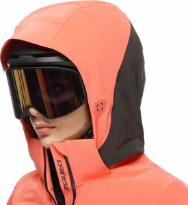 "The elastic inner lining at the back provides additional comfort, making this jacket the perfect choice for female skiers who want to push their limits without sacrificing comfort. Practical details such as waterproof zippers, multiple pockets for ski passes and other items as well as an adjustable drawstring at the hem and an adjustable hood round off the design of this technical jacket."