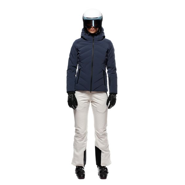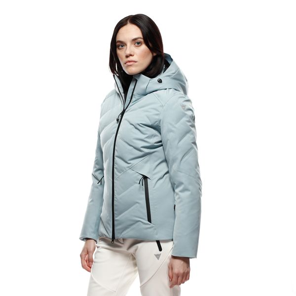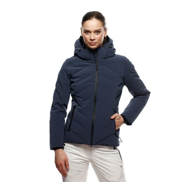 "The Virtus Dermizax EV WMN jacket from Dainese is the ideal choice for female skiers who do not want to compromise on performance and design. This technical down jacket combines a waterproof Dermizax® EV® down fabric with a soft down lining to provide optimal protection from the elements. With a waterproof rating of 20,000 mm and breathability of 20,000 g/mu00b2/24h, the jacket ensures you stay dry and comfortable even in the most demanding conditions"