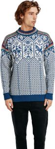 "The 1994 Masc Sweater from Dale of Norway is a stylish and timeless garment that embodies Norway's rich history and craftsmanship. Inspired by the official Olympic sweater of the 1994 Winter Olympics in Lillehammer, this sweater brings a piece of sports history to your wardrobe. The design preserves the original patterns inspired by symbols and figures from Nordic mythology, while offering a modern regular fit that ensures a comfortable and stylish look."