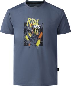 "Lightweight, quick-drying children's T-shirt with recycled material and eye-catching graphic print for active adventures."