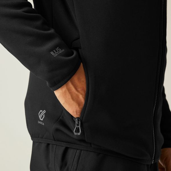 "The Camber II Stretch Midlayer from Dare2b is the ideal choice for those who prioritize comfort and functionality when skiing or snowboarding. Made from a high-quality, heavy stretch fabric with a recycled core, this mid-layer jacket not only offers freedom of movement, but also breathable insulation that is perfect as a mid-layer under a waterproof outer jacket. With a material weight of 240 g/mu00b2 and UV protection of UPF 50+, it reliably protects against cold and harmful sun rays"