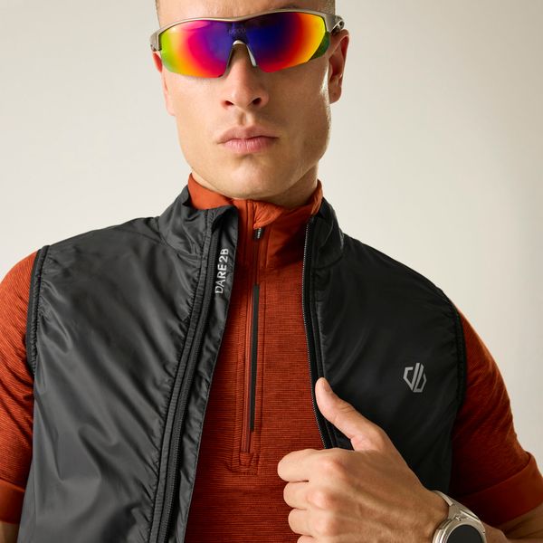 """The ""Chasegilet ""by ""Dare2b ""is ""the ""ideal ""men's ""cycling ""gilet ""for ""demanding ""tours ""in ""changing ""weather ""conditions. ""Developed ""with ""the ""innovative ""RIDE ""FIT ""Pro ""design, ""it ""offers ""optimized ""aerodynamics ""in ""the ""riding ""position ""to ""minimize ""drag ""and ""maximize ""comfort ""and ""endurance. ""The ""windproof ""panels ""effectively ""protect ""against ""wind ""chill, ""while ""the ""strategically ""placed ""mesh ""fabric ""in ""the ""inner ""lining ""provides ""additional ""warmth." ""
