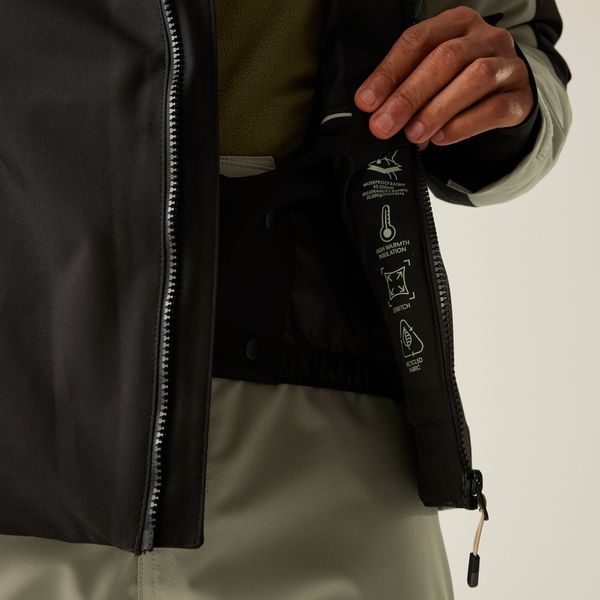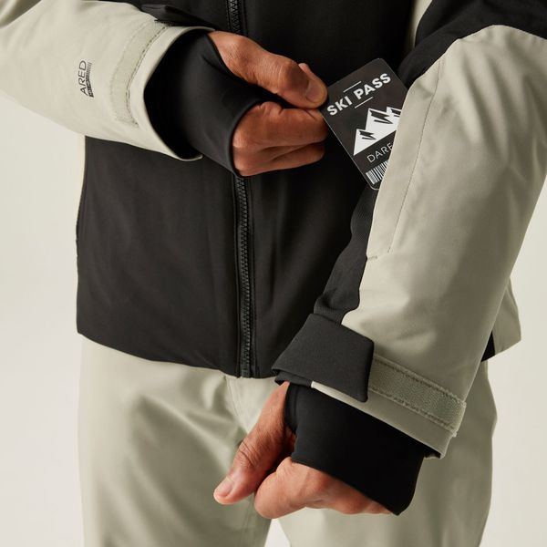 "The Eagle III jacket from Dare2b is an essential companion for anyone who ventures onto the ski slopes in the winter months. This jacket combines functionality and sustainability thanks to its recycled, waterproof and breathable ARED 30/30 stretch fabric, which ensures optimum comfort and protection. Thanks to the welded seams, the body stays dry even in extreme conditions, while the Sub Zero thermal technology warms reliably even at temperatures of up to -22 degrees. The jacket is also windproof to prevent it from cooling down and features a high-warmth padding made from recycled material and a recycled polyester lining with a scrim-ribbon insert for additional warmth."