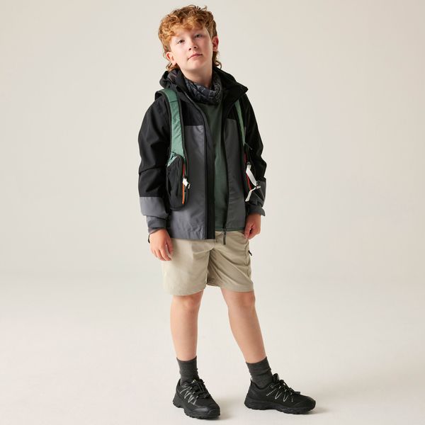 """The ""Explore ""Iiijkt ""kids ""jacket ""from ""Dare2b ""is ""the ""perfect ""companion ""for ""young ""adventurers ""who ""love ""to ""explore ""the ""outdoors. ""This ""jacket ""offers ""ultimate ""protection ""from ""the ""elements ""thanks ""to ""its ""impressive ""water ""resistance ""of ""35,000 ""mm ""and ""maximum ""breathability ""of ""35,000 ""g/mu00b2/24 ""hours. ""The ""robust, ""water-repellent ""outer ""material ""and ""the ""fully ""welded ""seams ""ensure ""that ""the ""little ""ones ""stay ""dry ""even ""in ""heavy ""rain."