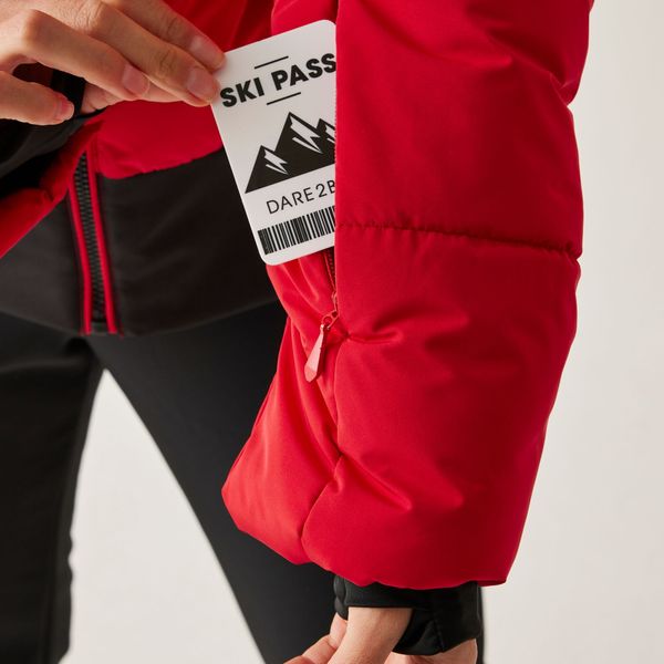 "Discover ultimate comfort and style with the Glitz Jacket from Dare2b, designed specifically for adventures in the snow. Ideal for skiing and snowboarding, this jacket is made from a recycled, waterproof and breathable fabric u2013 Ared 15/15. Thanks to the welded seams on the hood and critical areas, it offers excellent protection from the wet, exactly where you need it most."