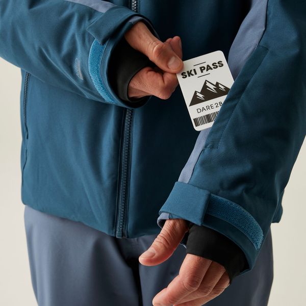 "The Halfpipe III jacket from Dare2b is the perfect companion for all winter sports enthusiasts who don't want to compromise on comfort and protection even in extreme conditions. Made from recycled, waterproof and breathable Ared 30/30 stretch fabric, this jacket offers excellent protection against wind and weather. The durable water-repellent finish and welded seams guarantee absolute waterproofness, while the abrasion-resistant material ensures durability. The high level of warmth is ensured by padding made from recycled material and a polyester lining with scrim-rock insert, which provides additional warmth"