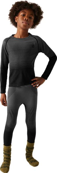 "The K In The Zn III B L set by Dare2b is the ideal choice for young winter sports enthusiasts looking for comfort and performance on the slopes. Thanks to the innovative SeamSmart technology, the set offers maximum freedom of movement and reduces the number of seams for ultimate comfort and durability. The seamless material fits snugly to the body and its soft feel makes it comfortable to wear. The material is also breathable and efficiently wicks away moisture while drying quickly, making it perfect for intensive activities such as skiing and snowboarding"