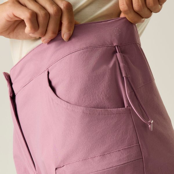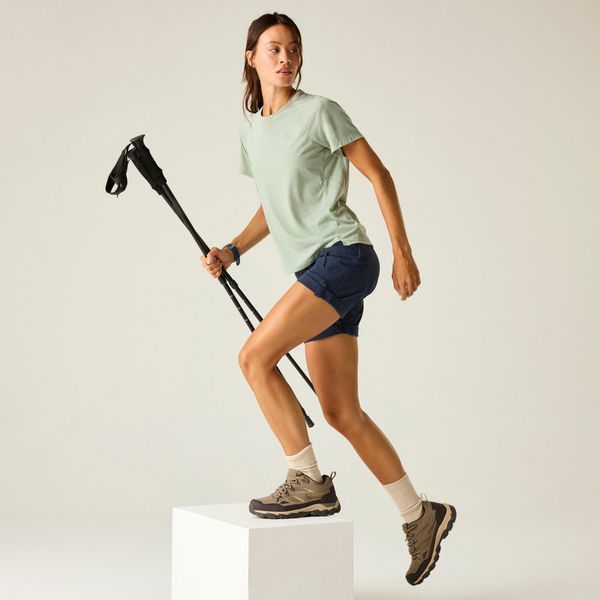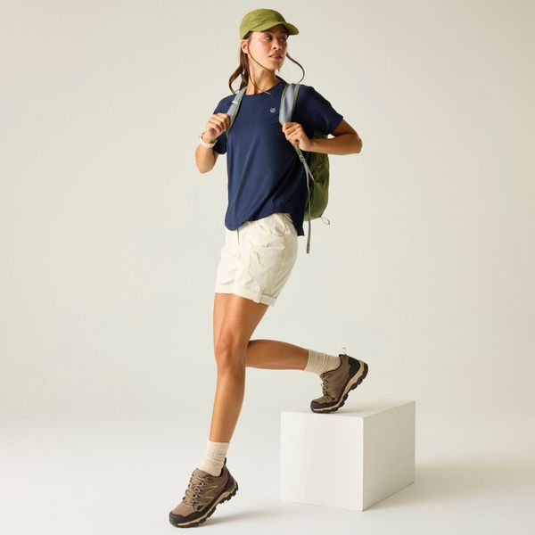 """The ""Melodic ""III ""shorts ""by ""Dare2b ""are ""the ""ideal ""companion ""for ""women ""who ""want ""to ""master ""both ""outdoor ""adventures ""and ""everyday ""life ""in ""style. ""Made ""from ""a ""high-quality ""nylonelastanestretch ""fabric, ""these ""shorts ""not ""only ""offer ""outstanding ""comfort, ""but ""also ""impressive ""durabilityu00e4highness. ""Thanks ""to ""the ""water-repellent ""finish ""and ""windproof ""properties, ""they ""reliably ""protect ""you ""from ""unpredictable ""weather ""conditions ""and ""keep ""you ""dry ""and ""warm."