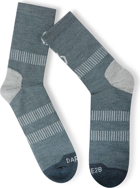 "The Merino Walking Sk by Dare2b are the perfect companion for anyone who likes to hike a lot. Made from a high-quality merino wool blend, these socks offer natural temperature and moisture regulation, keeping your feet dry and comfortable even on long distances. The composition of 65% merino wool, 30% polyamide and 5% elastane ensures an ideal balance of softness, durability and elasticity."