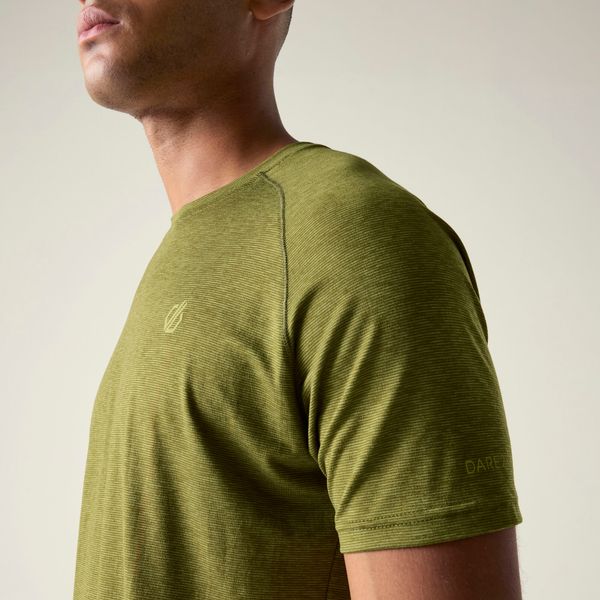 """The ""Persist ""Tee ""from ""Dare2b ""is ""the ""perfect ""shirt ""for ""active ""men ""who ""value ""both ""comfort ""and ""functionality. ""It ""is ""ideal ""for ""a ""variety ""of ""outdooractivities ""such ""as ""hiking, ""running, ""fitness ""and ""even ""water ""sports. ""Thanks ""to ""the ""advanced ""Q-Wic ""technology, ""moisture ""is ""effectively ""wicked ""away ""from ""the ""skin, ""ensuring ""a ""pleasantly ""dry ""feel. ""The ""material ""is ""made ""from ""93% ""recycled ""polyester ""and ""7% ""elastane, ""which ""is ""not ""only ""environmentally ""friendly, ""but ""also ""ensures ""high ""elasticity ""and ""freedom ""of ""movement."