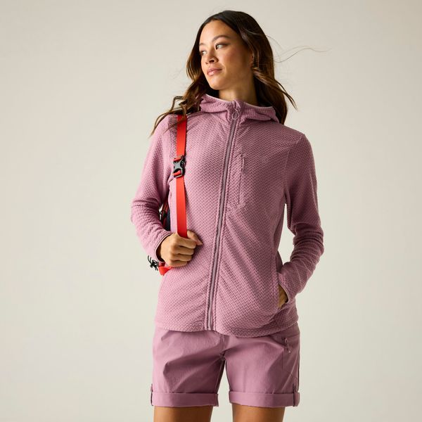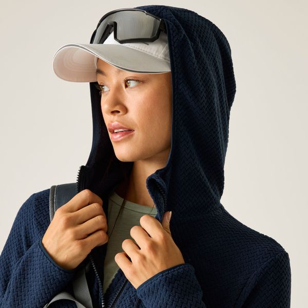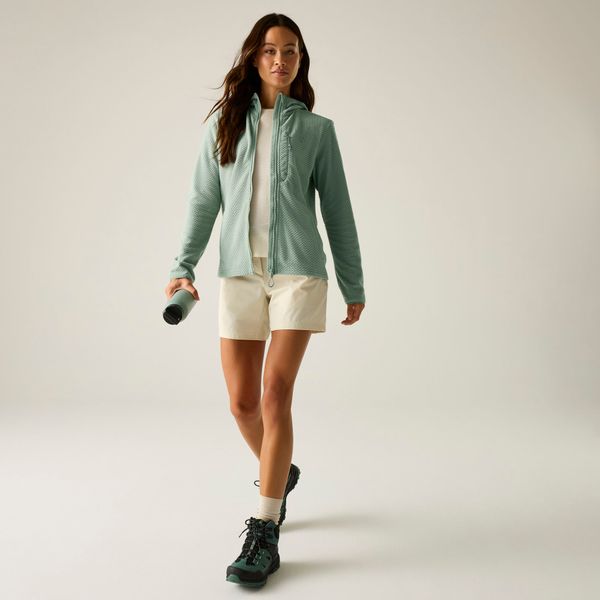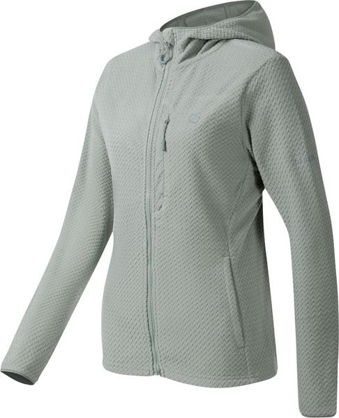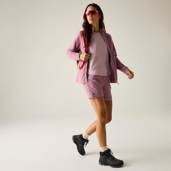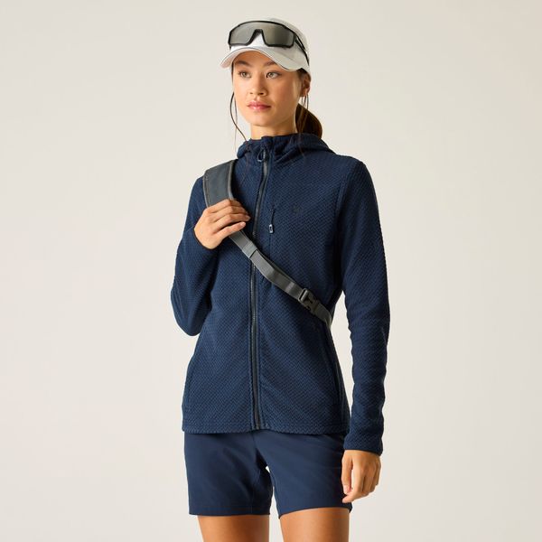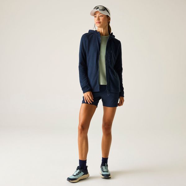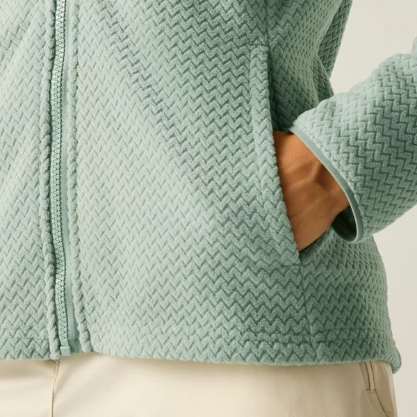 "Lightweight, environmentally friendly women's fleece jacket with UV protection and maximum freedom of movement for comfortable outdoor adventures."