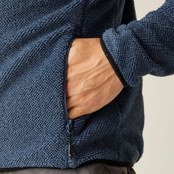 "Warm, environmentally friendly fleece with practical zippered pockets for outdoor adventures."