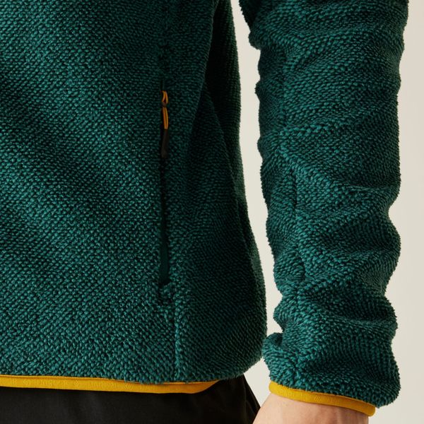 "The stretch edging on the collar, cuffs and hem ensures a close fit that guarantees freedom of movement while keeping you cool. Practical zippered pockets are set low and offer secure storage space for important items, whether on the slopes or on everyday adventures. In addition, the fleece has a sleeve pocket with zipper closure, which is ideal for small items. With a total weight of 475 g in size M, it is light enough not to weigh you down, but still offers the necessary protection and comfort."