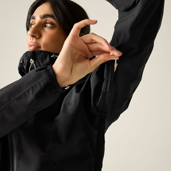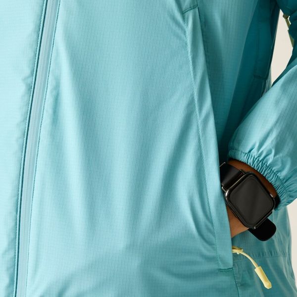 "Lightweight, windproof women's jacket with waterproof protection and high breathability for outdoor activities."