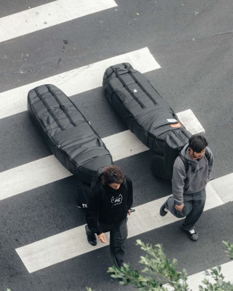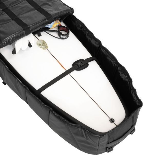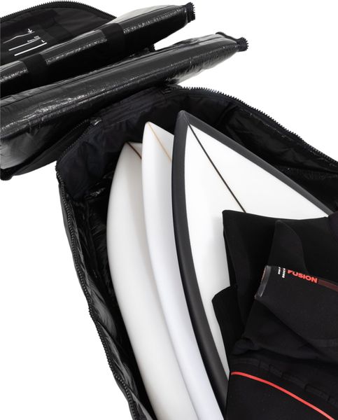 The world's first rib protected, compressible, wheeled surfboard bag. Fits 3 to 4 boards up to 6’6”. PCT Patent pending.