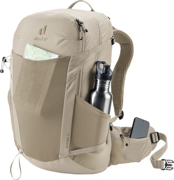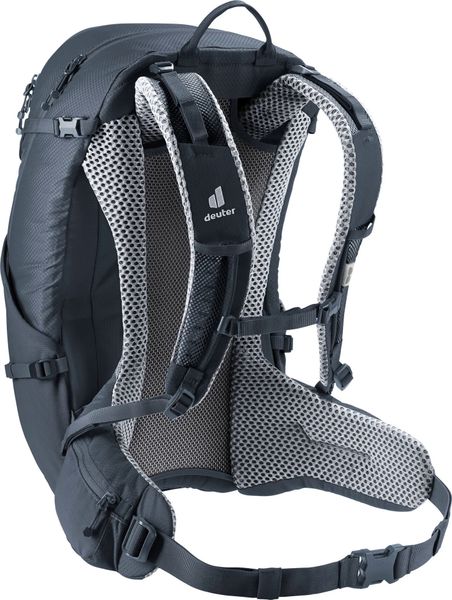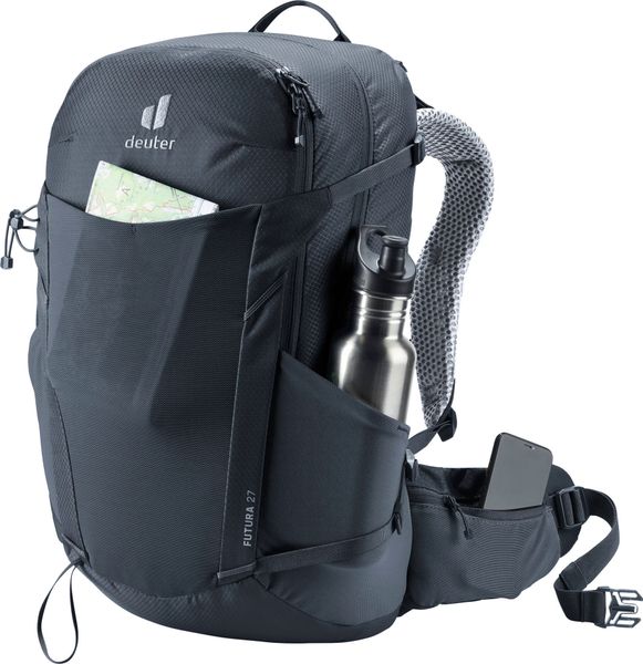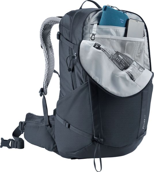 """The ""Futura ""27 ""from ""Deuter ""is ""the ""ideal ""companion ""for ""anyone ""who ""enjoys ""being ""out ""in ""nature. ""This ""lightweight ""hiking ""backpack ""is ""specially ""designed ""for ""longer ""mountain ""tours ""and ""offers ""excellent ""ventilation ""thanks ""to ""the ""innovative ""AircomfortRu00fcck ""system. ""The ""ActiveFitshoulder ""straps ""and ""the ""hip ""fins ""with ""Pull-Forward ""adjustment ""ensure ""optimum ""weight ""distribution ""and ""even ""load ""distribution, ""which ""significantly ""increases ""comfort."