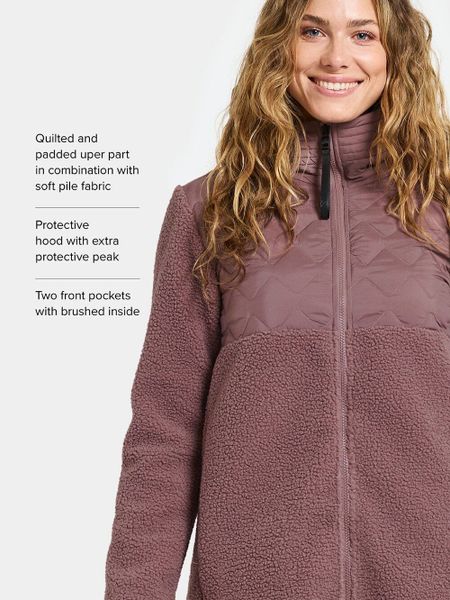 """The ""Bibi ""WNS ""Fullzip ""2 ""is ""a ""versatile ""and ""stylish ""fullzip ""sweater ""for ""women ""that ""is ""perfect ""for ""both ""everyday ""wear ""and ""outdoor ""activities. ""This ""functional ""Didriksons ""sweater ""skilfully ""combines ""a ""quilted ""upper ""section ""with ""soft ""teddyfleece, ""which ""not ""only ""creates ""an ""elegant ""look, ""but ""also ""offers ""pleasant ""warmth. ""With ""a ""filling ""of ""60 ""g/mu00b2, ""it ""will ""keep ""you ""warm ""even ""on ""colder ""days"