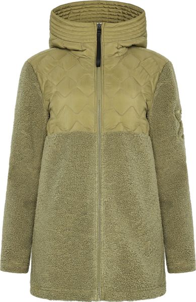 "Elegant women's sweater with teddy fleece and hood, ideal for everyday and outdoor wear."