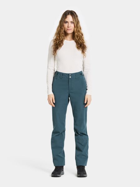 "The Idun WNS Pants 2 from Didriksons are the ideal choice for anyone who likes to be active outdoors all year round. These women's trousers combine lightness and comfort with high functionality. Made from a breathable material with a waterproof rating of 10,000 mm, they offer reliable protection from wind and weather. Thanks to the sealed seams, the trousers remain completely waterproof even in heavy rain. The 40 g/mu00b2 padding ensures a comfortable warmth, while the soft, woven surface with a matt finish provides a stylish look."