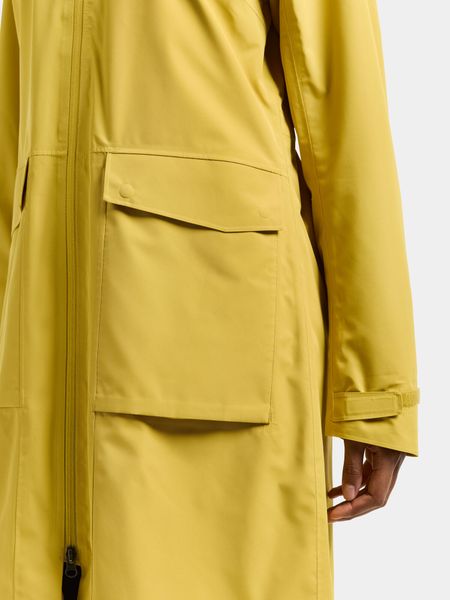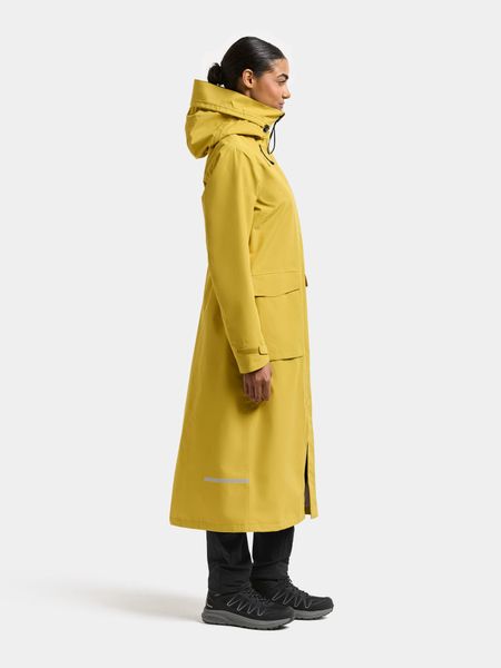 "Long, weatherproof women's parka with adjustable hood, reflective details and high waterproofness."