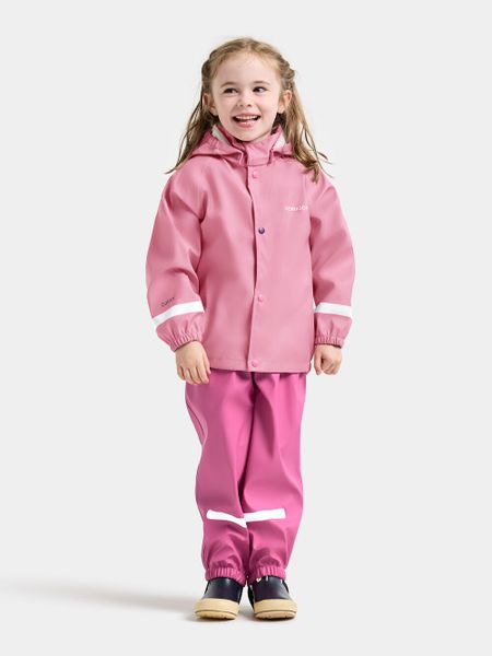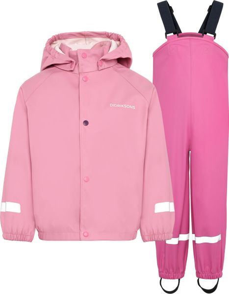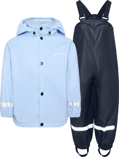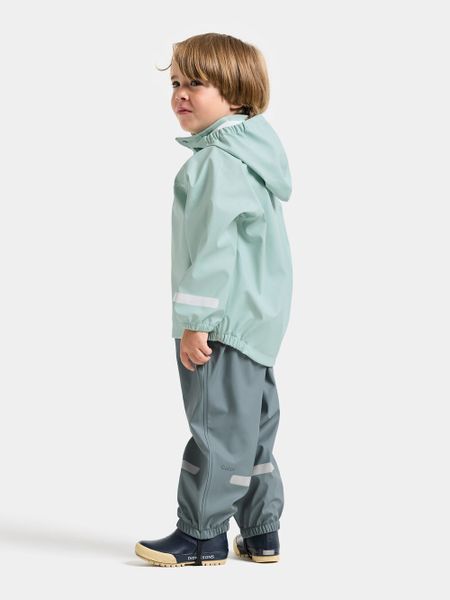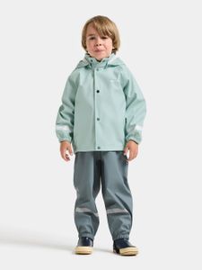 """The ""Slaskeman ""Kids ""SET ""4 ""from ""Didriksons ""is ""the ""ideal ""choice ""for ""adventurous ""children ""who ""want ""to ""play ""outdoors ""even ""in ""bad ""weather. ""This ""waterproof ""rainset, ""consisting ""of ""a ""jacket ""and ""trousers, ""is ""made ""from ""robust ""Galonu00ae ""material ""and ""offers ""optimum ""protection ""from ""the ""wet ""with ""a ""wateru00e4ule ""of ""8,000 ""mm. ""The ""welded ""seams ""guarantee ""a ""100% ""waterproof ""construction ""that ""keeps ""little ""explorers ""dry ""even ""in ""heavy ""rain."