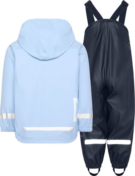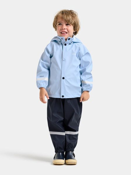 "Waterproof children's rain kit with reflective details, detachable hood and adjustable fit for every adventure."